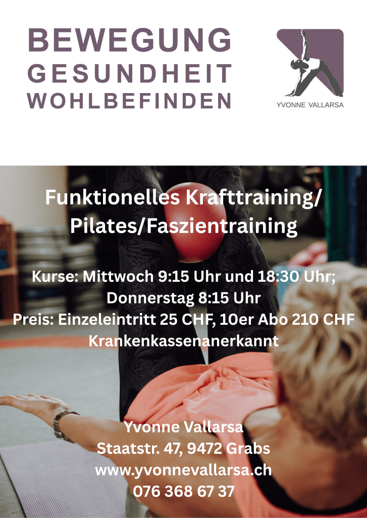Neu: ab 7.Januar 2026 biete ich Gruppen Kurse an der Staatstr. 47a in Grabs an. Gerne mit Anmeldung